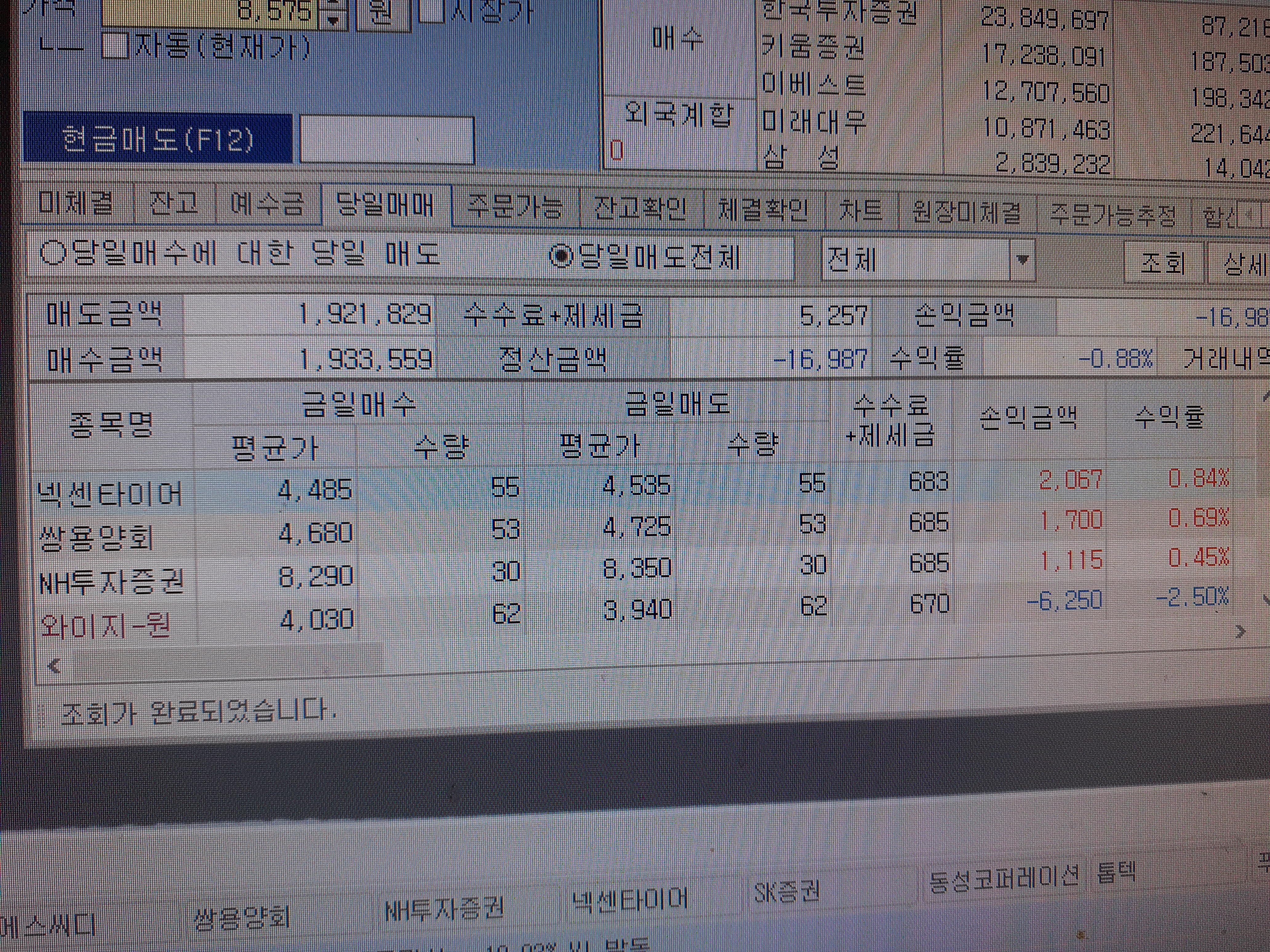 연습겸 내가 팔아봄. . 장이 하락하니 수익나다가